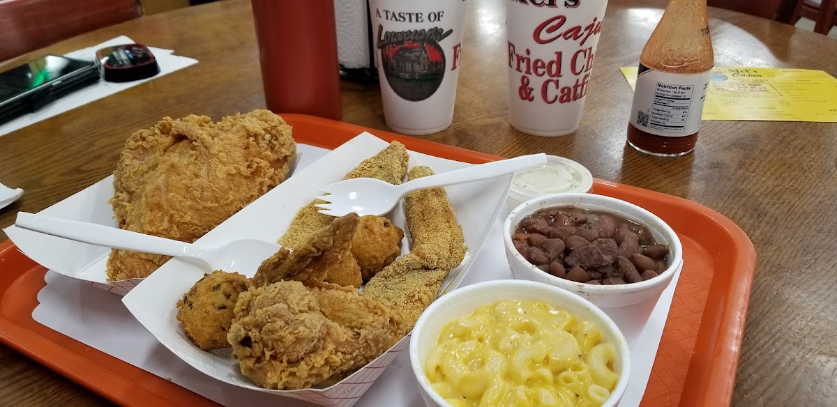 Not from LA but this is the best fried chicken I e had in the state so far. Helped me understand what Louisiana fried chicken should taste like. The fish was okay, red beans and rice was soupy but so much flavor, couldnt be mad at it. Everything I had was fresh. Found me a new travel stop for when im on the road!